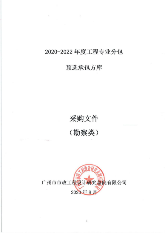 2020-2022年度工程專業(yè)分包預(yù)選承包方庫采購(gòu)文件(勘察類)