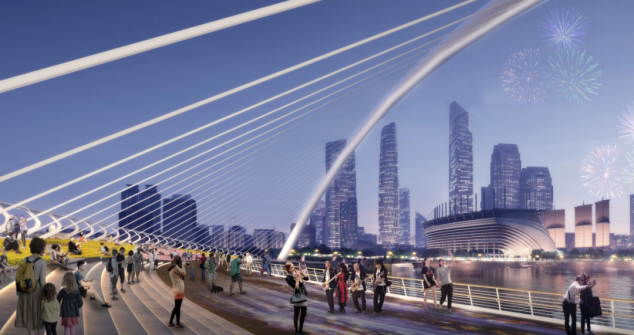 項(xiàng)目坐落于廣州城市會客廳的重要位置,珠江沿線核心景觀一覽無余。海心沙人行橋?qū)⒖p合廣州南北軸線,點(diǎn)綴廣州城市客廳活力,成為南北經(jīng)濟(jì)、商務(wù)、旅游發(fā)展連接紐帶。