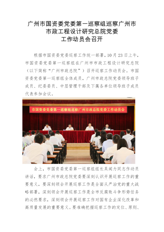 廣州市國資委黨委第一巡察組巡察廣州市市政工程設(shè)計研究總院黨委工作動員會召開