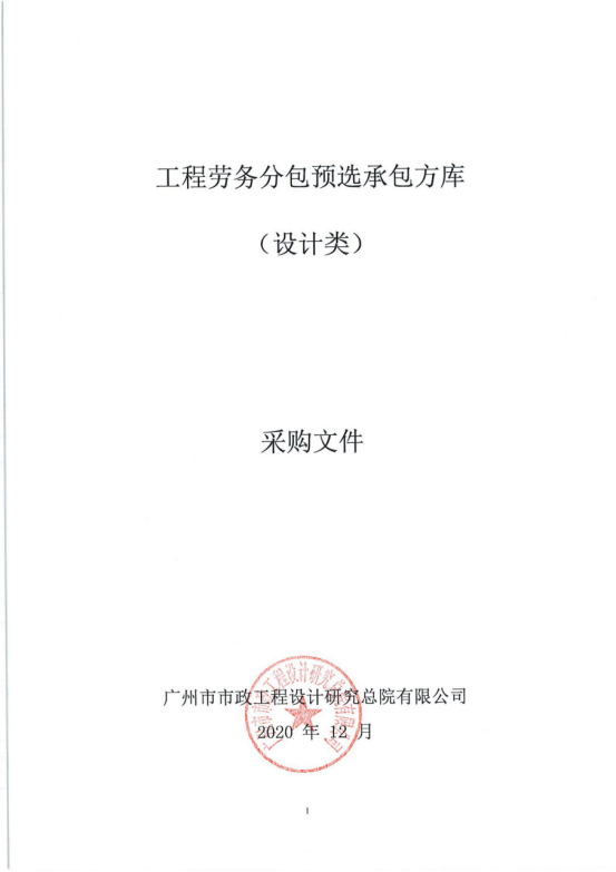 工程勞務(wù)分包預(yù)選承包方庫(kù)采購(gòu)文件(設(shè)計(jì)類)