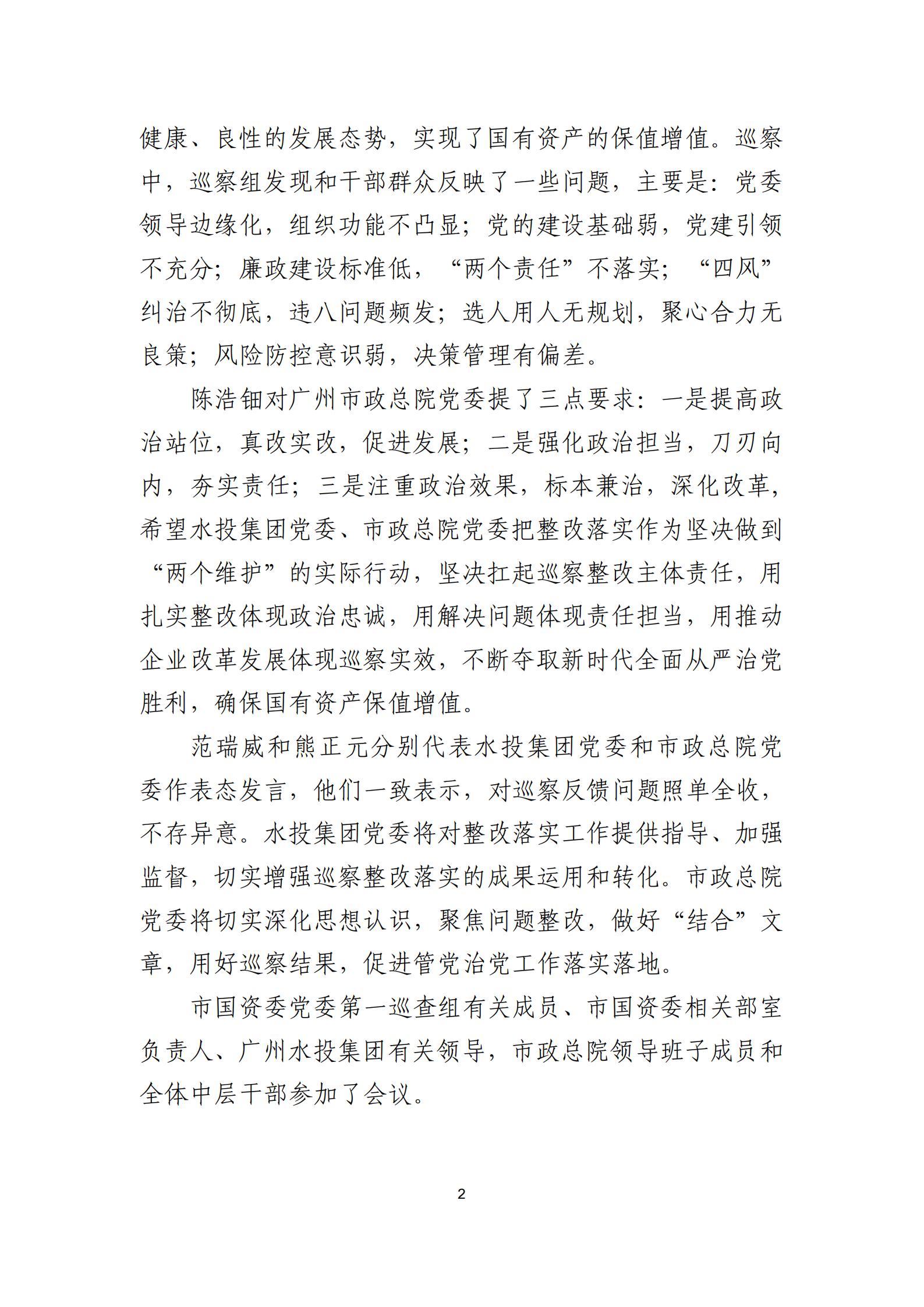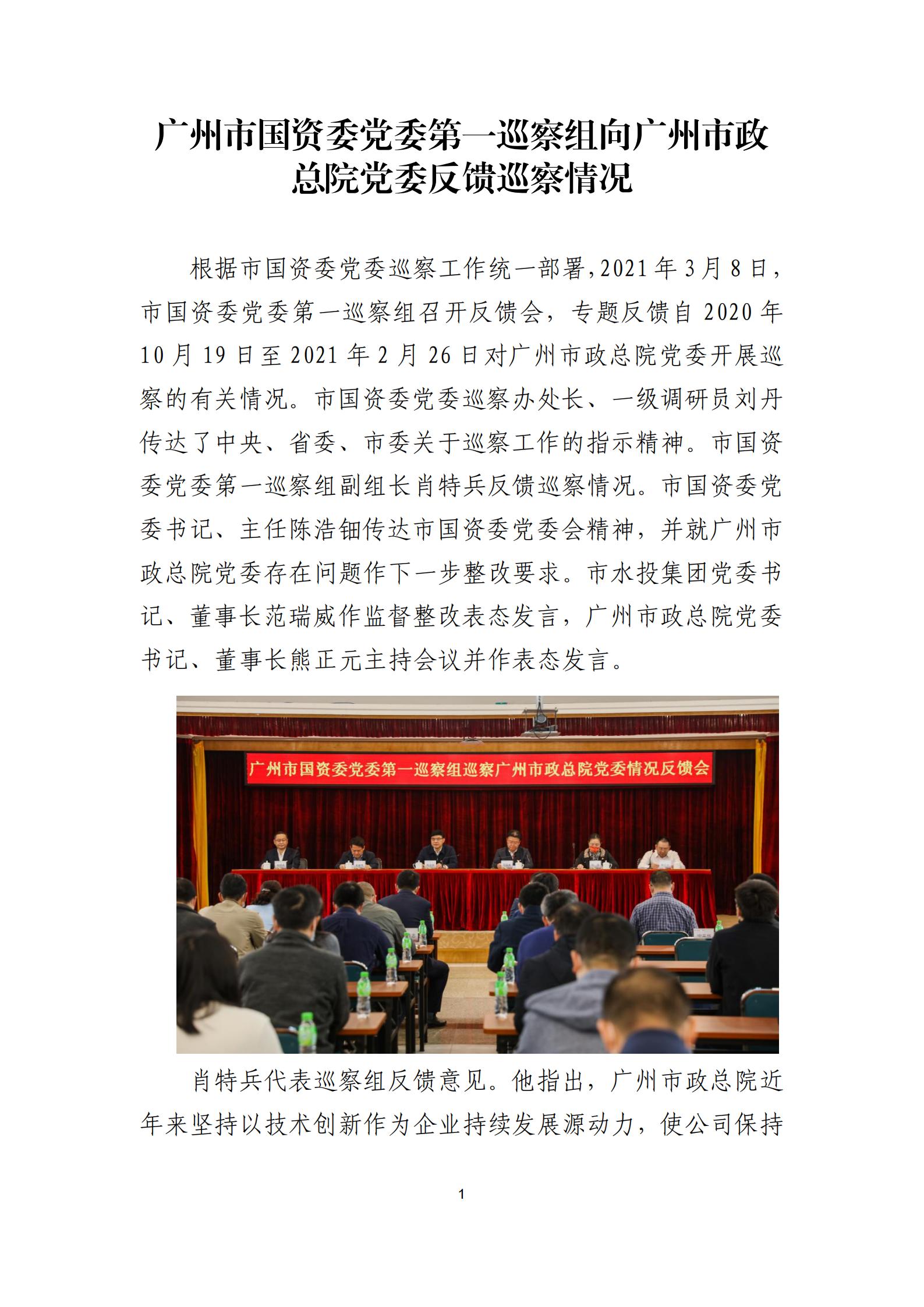 廣州市國資委黨委第一巡察組向廣州市政總院黨委反饋巡察情況