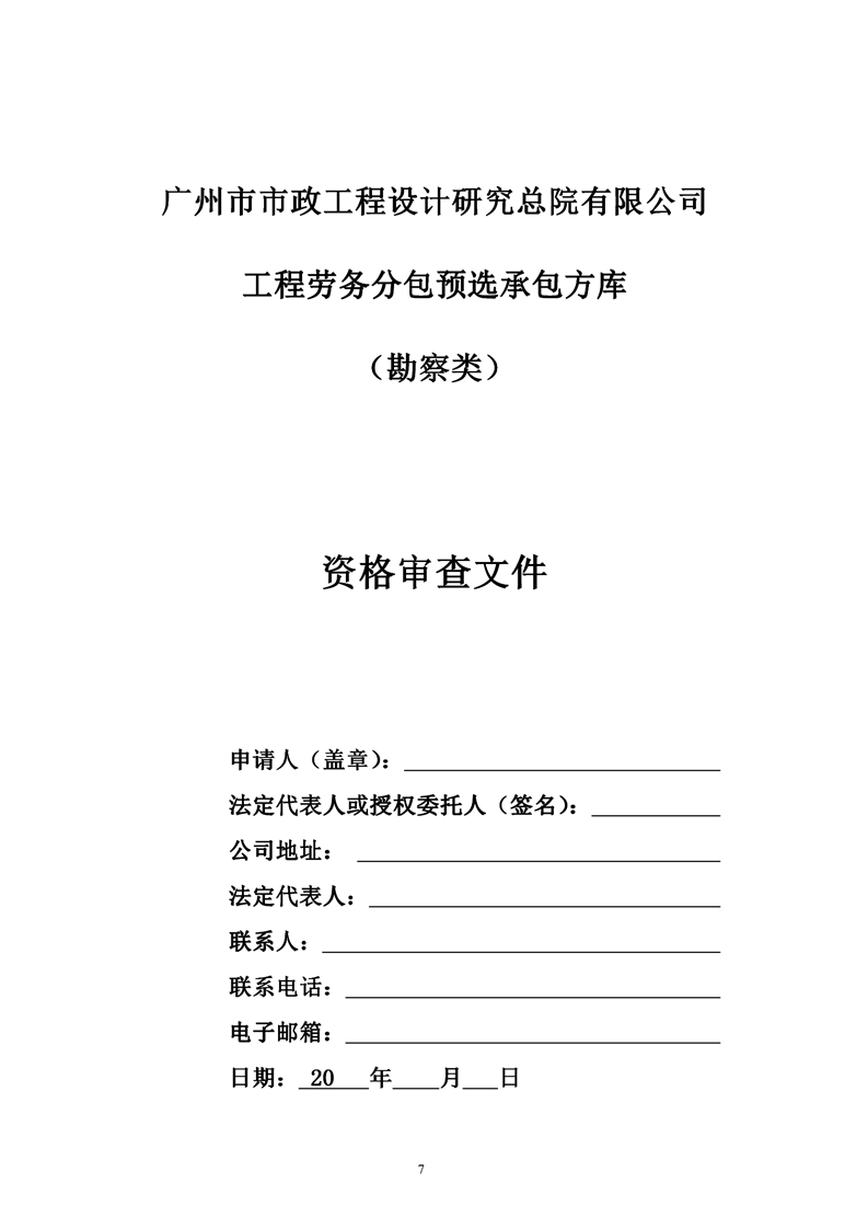 工程勞務(wù)分包預(yù)選承包方庫(kù)采購(gòu)文件(勘察類(lèi))