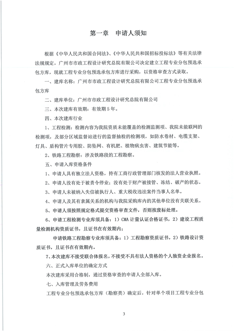 工程專業(yè)分包預(yù)選承包方庫(kù)采購(gòu)文件(勘察類)