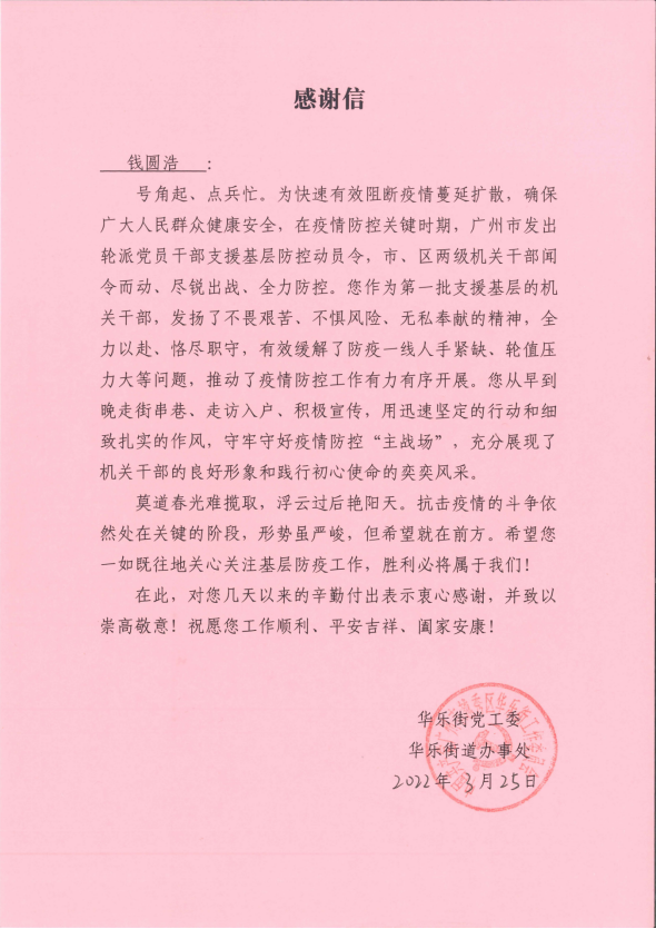 廣州市政總院黨委貫徹保障業(yè)務(wù)工作和協(xié)助社區(qū)服務(wù)兩不誤的原則,號召全體黨員分批次地回各自居住地所在社區(qū)支援疫情防控工作,沖鋒“疫”線。自3月16日至3月27日,總院黨員積極接受社區(qū)黨組織的統(tǒng)一調(diào)度,與街道社區(qū)眾志成城打勝防疫攻堅戰(zhàn),受到了街道社區(qū)工作人員以及居民們的一致好評。