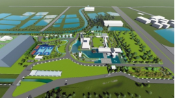 龍歸污水處理廠地面景觀效果圖、現(xiàn)場(chǎng)航拍圖
