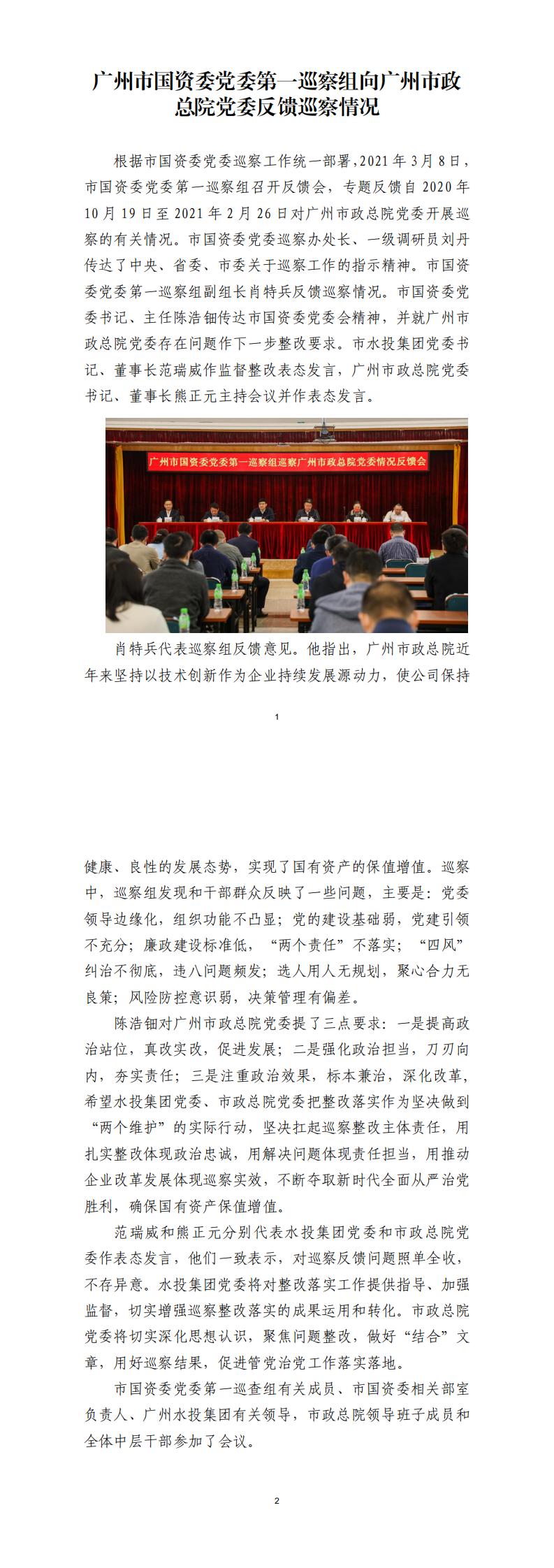 廣州市國資委黨委第一巡察組向廣州市政總院黨委反饋巡察情況