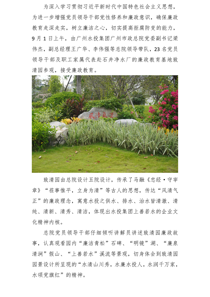 蒞事惟平 立身惟清--廣州水投集團廣州市政總院黨委組織黨員領導干部參觀致清園暨開展紀律教育月活動