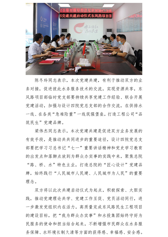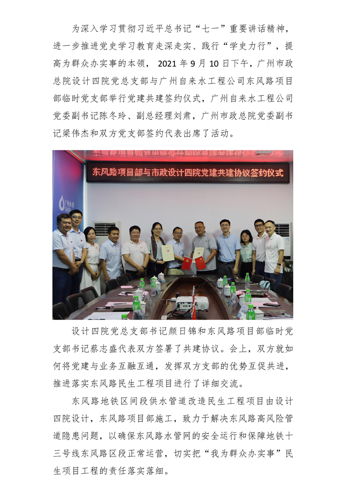 互融互通 互促共進(jìn)——廣州水投集團(tuán)廣州市政總院設(shè)計(jì)四院黨總支部與廣州自來水工程公司東風(fēng)路項(xiàng)目部臨時(shí)黨支部舉行黨建共建簽約儀式 發(fā)布時(shí)間:2021-09-11閱讀次數(shù):