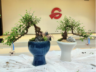 現(xiàn)場花藝老師跟總院學員們互動問答,老師還準備了鮮花和小綠植作為獎勵送給答對的學員。學員們積極搶答,活動情緒熱烈,氣氛高漲。造型各異的盆景微景觀在巧思巧手下誕生,果然是懂“設計”的小姐姐,件件別出心裁,創(chuàng)意十足。